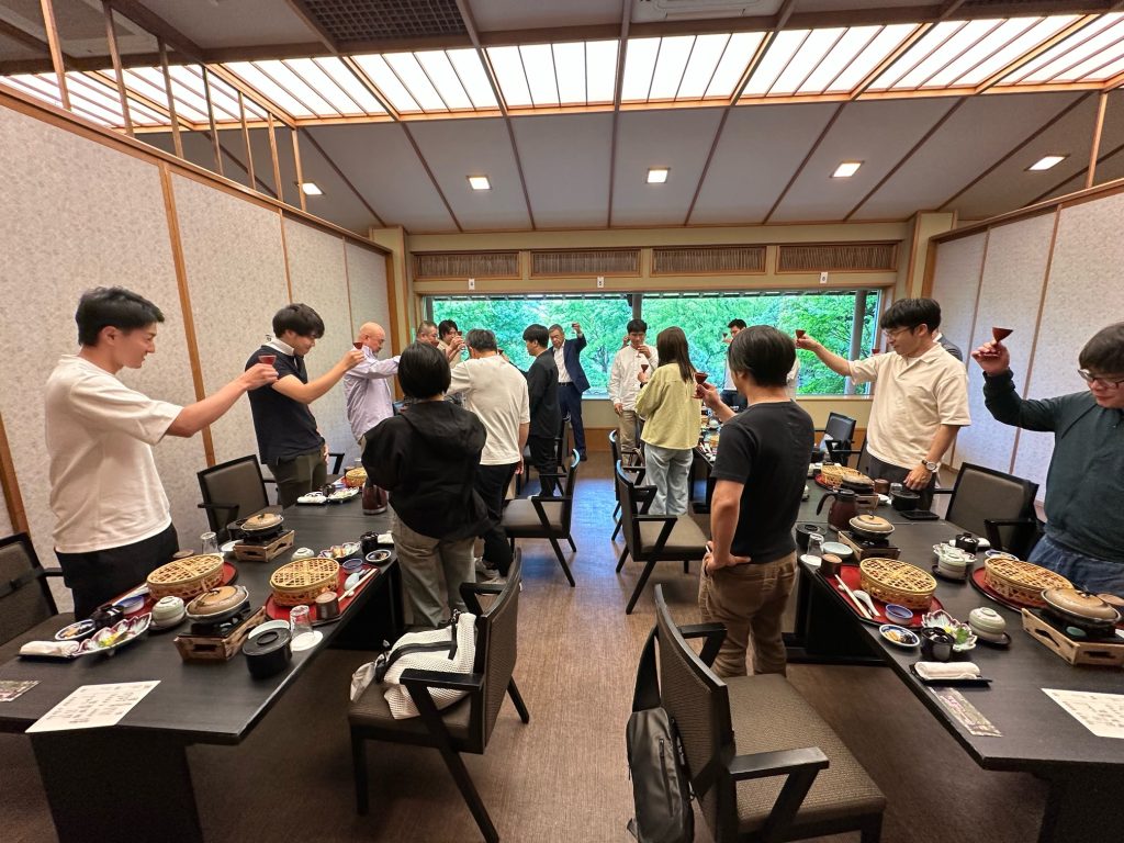 1日目は島根県の出雲大社へ、安全祈願祈祷をしていただきました。宿泊は、「はたご小田温泉」さんへ、美味しいお料理、疲れを癒してくれる温泉、行き届いたおもてなしの数々、由緒ある旅館での時間は、心癒されるひと時でありました。特別授業として、先代女将様より、創業のお話、おもてなしについて講和していただきました。お客様に喜んでいただく場面を創出することは、業界は違いますが、私たちも同じ想いです。学び溢れるお話の数々、大変光栄でした。